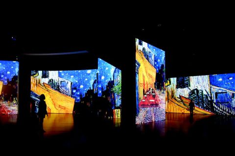 Aki úgy dönt, hogy megnézi a Váci1 üzletházban (Bp. V., Vörösmarty tér elején) megrendezett Van Gogh-kiállítást, jól teszi, ha minden eddigi képzőművészeti kiállításokkal kapcsolatos tapasztalatát és előítéletét elfelejti. Kezdve azzal, hogy ezen a kiállításon nincs egyetlen darab festmény sem, viszont a termek falfelületei, oszlopai, sőt padlója hatalmas vetítővásznakkal van beborítva, melyekre komputervezérelt projektorok vetítik ki a háromezer Van Gogh-festmény feldolgozásával készült animációkat.