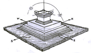 Az i.u. 5. századtól egy új stílus bontakozik ki nemcsak a sztúpa-, de a templomépítésben is, mely a múlttól a jövő felé való fordulást, a horizontális helyett a függőleges fejlődést, a földtől való elemelkedést, a befelé fordulás és halál helyett az extraverziót és az életet, a változással szemben a létet, a törvényt, az örökkévalót hangsúlyozza. Ez az új, szoláris spiritualitás az építészetben a piramis és kúp alakú formákban, tornyokban, csúcsokban jelenik meg. Jellegzetes szimbólumai a Nap mellett a korong, a kerék, a lótusz, a léttengely és az életfa, melynek ágai az egyes világsíkok. Az indiai istenháromságban ezt a fajta spirituális attitűdöt Visnu, a lét fenntartója személyesíti meg.