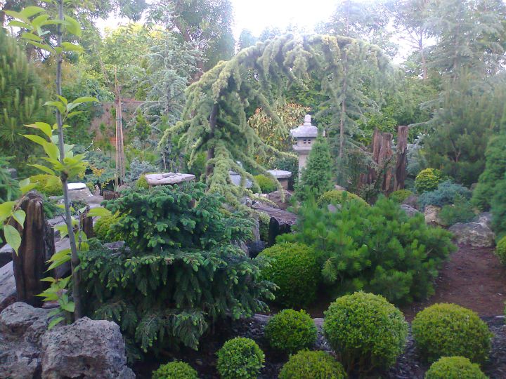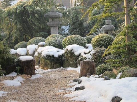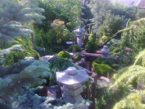 Sétánk végén, eltelve a vándorút élményeivel, helyet foglalunk a kert nyugati végében kialakított meditációs sarokban, és átadjuk magunkat a teaszertartás nyugalmas és tiszta élvezetének. Órák repülnek el észrevétlenül, miközben a pirított rizs ízét és illatát idéző teát kortyolgatjuk, csendesen szemlélve a kert statikus nézőpontból sem szűnő alakváltozásait. Felhő támad, eső szemerkél, majd eláll, lágy szellő lengedez, lassan bealkonyul. Megérkeztünk, nincs hová sietni. Ilyen lehetett a paradicsomi állapot, ahol a világot még szellem hatotta át.