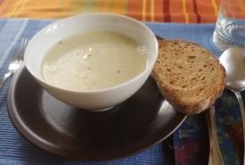 Tejszínes fokhagyma­krémleves rozsos pirítóssal