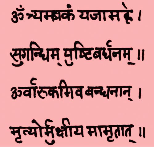 Ez az ősi szöveg az Yajurveda egyik gyógyító ráolvasásában (III. 60) és az Atharvavedában (XIV. 1.17) is szerepel, ezért olykor gyógyító hatású mantraként is recitálják. Eredeti forrása azonban a Ṛgveda egyik Rudrához szóló himnusza (Ṛgveda VII., 59.12). A Gāyatrī-mantra mellett a vallásos shaiva hitű hinduk napi imádságának második legfontosabb mantrája.