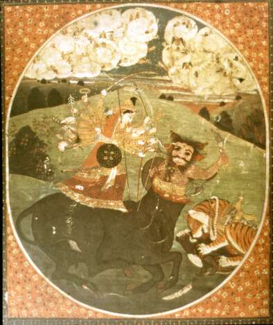 Az Indiai félszigetet meghódító árja törzsek rákényszerítették ugyan a társadalomra a maguk patriarchális kultúráját, vallási téren azonban az iszlámtól és a kereszténységtől eltérően nem megsemmisíteni igyekeztek az őslakosság körében továbbélő kultuszokat, hanem inkább beépítették azokat a védikus hagyományba, felvéve az ősi istenségeket az árja pantheonba. Az istennő különféle alakjait az új társadalmi berendezkedésnek megfelelően "beházasították" az árja főistenek családjába, s mint azok felesége vagy női energiája (sakti) nyerték el méltó, de mégis csak a férfiisten fennhatósága alá rendelt helyüket az isteni hierarchiában.